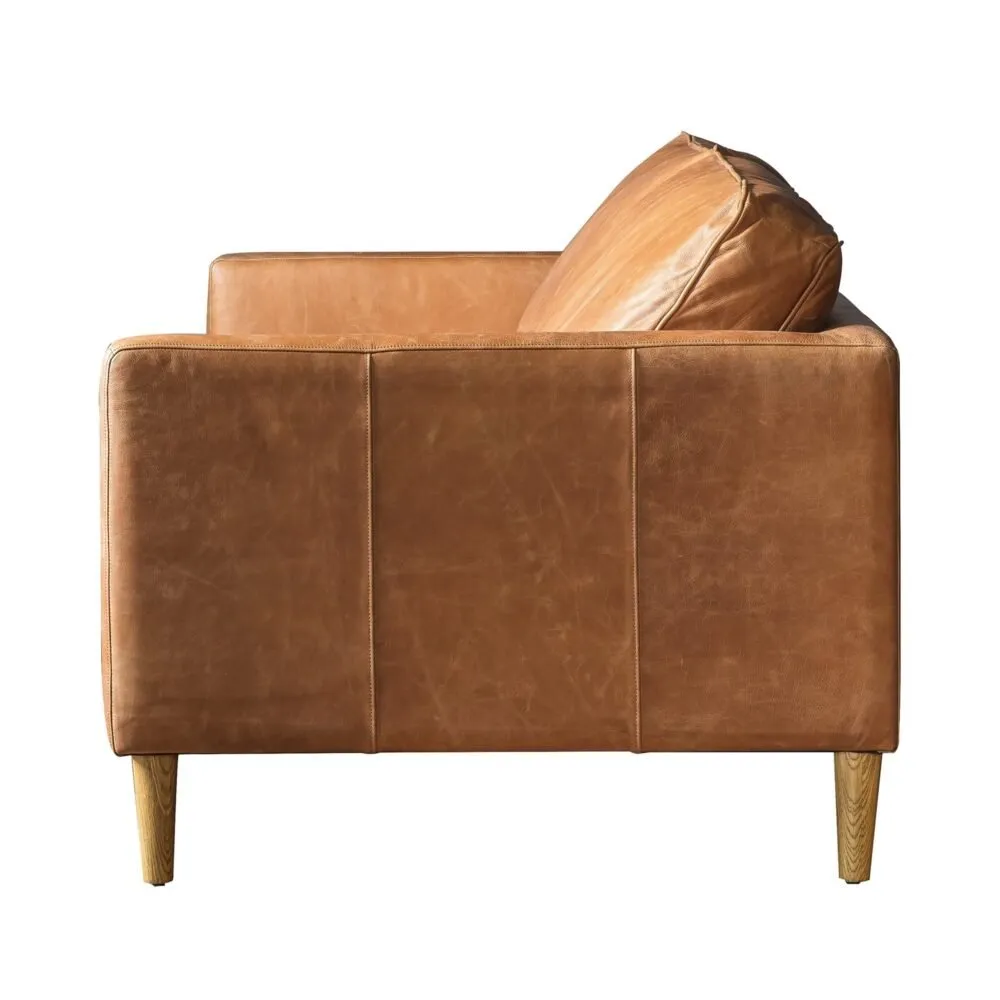 Bringing a vintage charm to your living room with this Vintage Brown Leather 2 Seater Sofa. The 2 seater sofa is finished with a brown top grain full leather hide in a stunning brown tone and complete with ash legs. The natural tone will suit a wide range of interiors, adding comfort and style to your home.