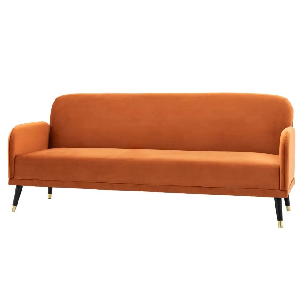 Bringing a contemporary design to your living room or spare room with this 2 Seater Velvet Couch. Complete with a hint of retro design with the gently curved edges to the backrest and thin arms. The sofa comes in a stunning rust fabric. This sofa featuring plush padded seats for extra comfort whether you are watching a movie or putting your feet up and relaxing with a book, this sofa will bring comfort and style.