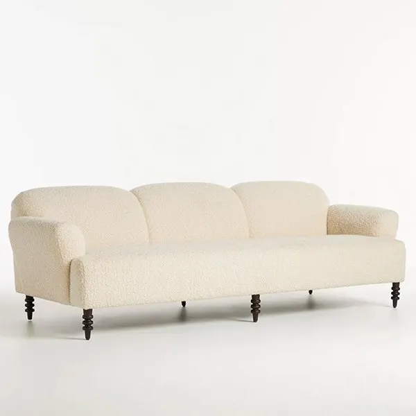 The Bouclé 3 Seater Couch is a modern sofa which suits every living room. It has a classic shape to it and is incredibly comfortable to relax on. The solid wooden legs keep it looking sleek and contemporary. Its clean lines and slick design make it a real focal point for any modern living space.