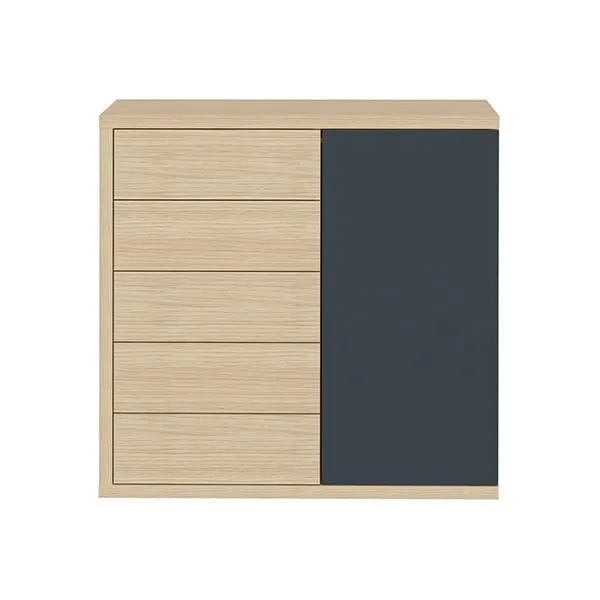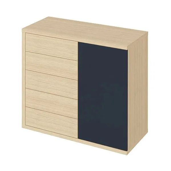 Cabinet with 5 Drawers retains the aesthetics and delicacy of the collection while offering additional storage, hidden behind its white or anthracite door. Its light oak finish, very illuminated, will highlight all the colors of your room for a contemporary and elegant interior. Match it with the bed from the same collection.