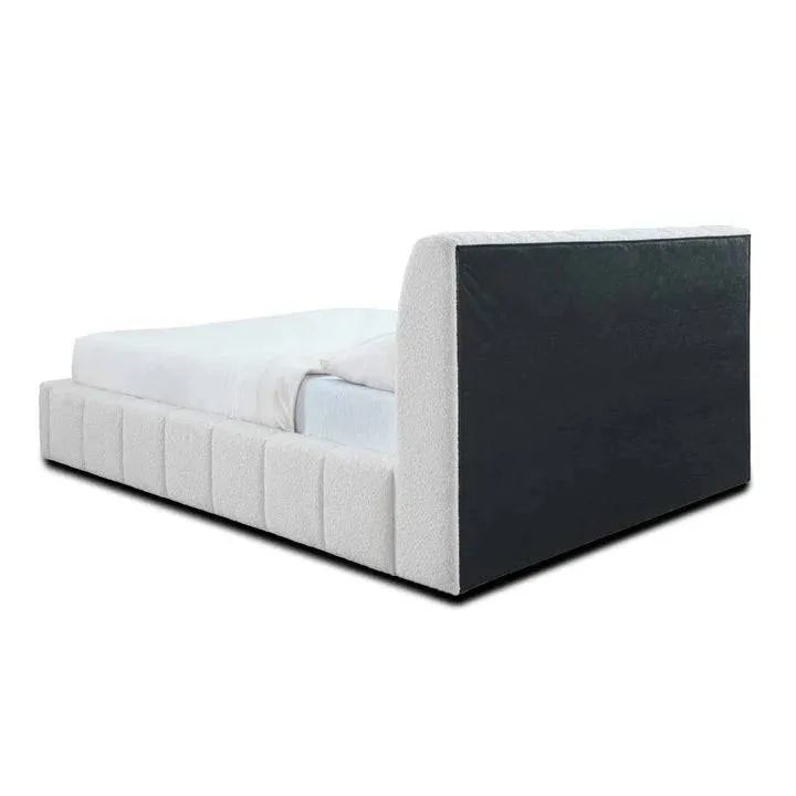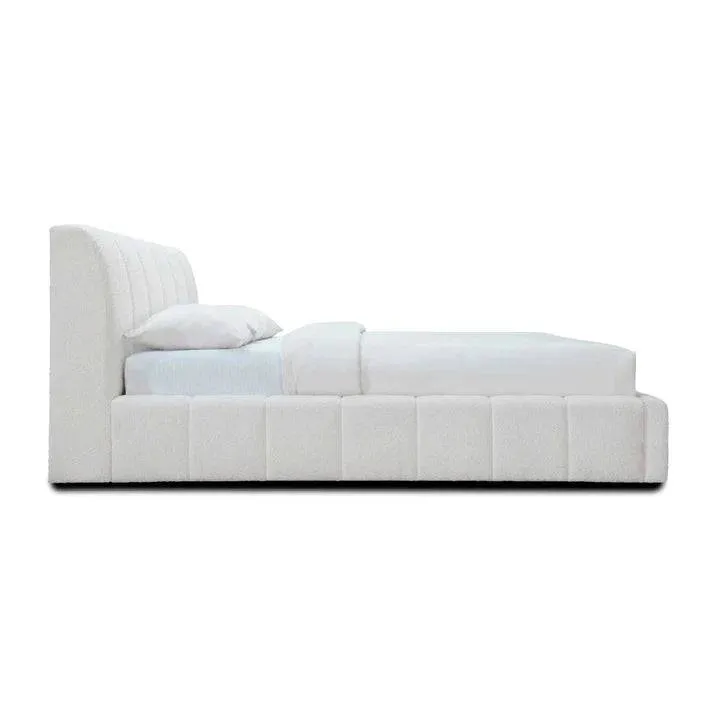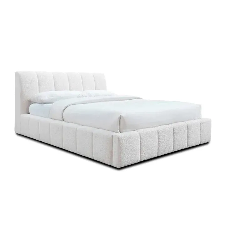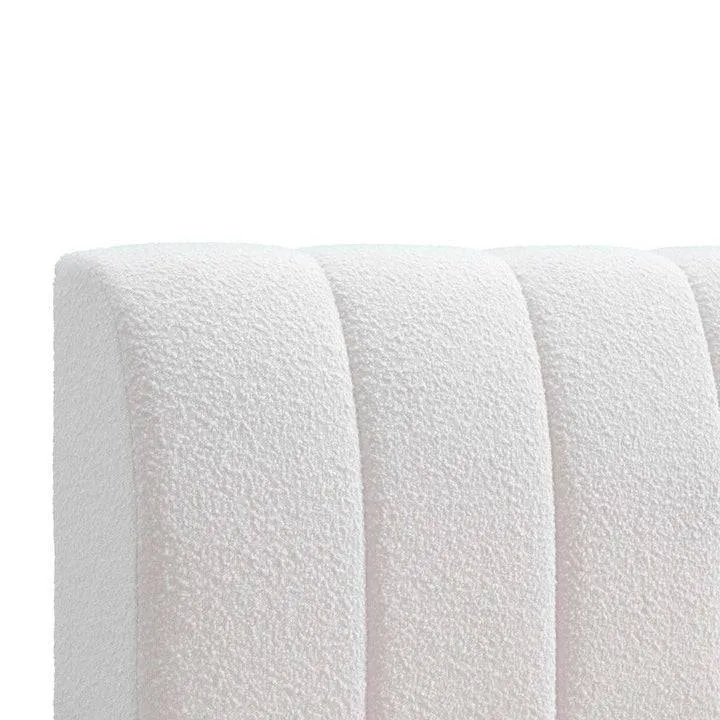 Transform your bedroom into a serene and luxurious sanctuary with the Channel Tufted white boucle fabric bed frame. This stunning bed frame is more than just a place to sleep; it’s a statement of style and comfort. Upholstered in a soft, textured white bouclé fabric, it offers a cloud-like feel and a sophisticated look that invites you to relax and unwind.
