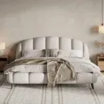 Experience luxury and comfort redefined with this upholstered platform bed from Posh House Furniture. Wrapped in premium Chenille fabric, it offers a soft, velvety touch that’s as durable as it is elegant. The distinctive shell-shaped headboard and footboard add a statement of sophistication, while the plush padding provides superior comfort and support — perfect for reading, relaxing, or simply unwinding in style.