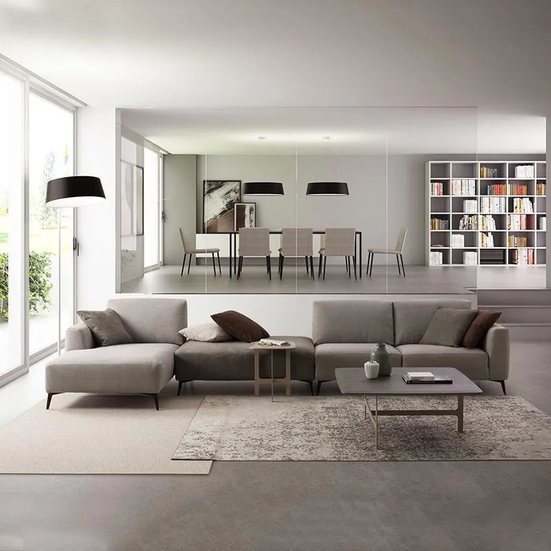 Comfy Modular Corner Sofa is a sectional sofa with soft back cushions and high feet. Its elegant and contemporary lines lighten up by high metal feet which are particularly useful when you need to clean the floor underneath. Modular Sectional Sofa is comfortable and practical for everyday use: the seat is filled with expanded foam offering the right support.