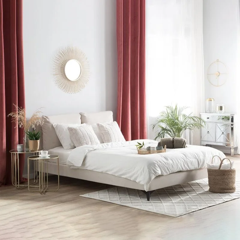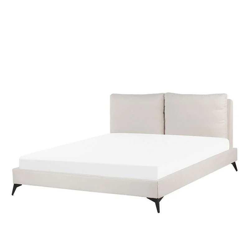 Double Cushion Headboard Bed is an elegant bed in a contemporary design that features a high and thick headrest. The rectangular shape makes it look very traditional, but combined with the pillow-like headrest, the whole bed gains a modern vibe. Its legs are small, and do not draw the attention away from the chic design, but ensure a strong, sturdy, and durable construction.