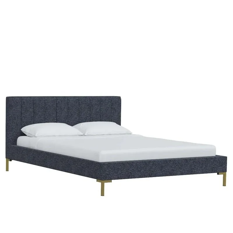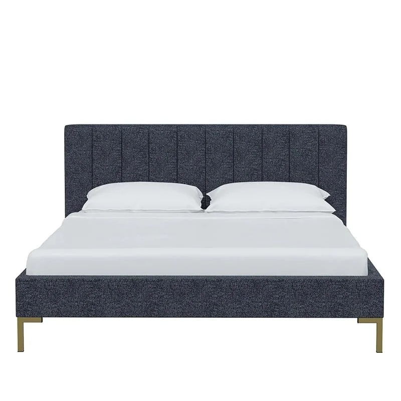 Blending clean lines with tactile upholstery, Lined Tufted Headboard Bed frame delivers an airy inviting modern-luxe look. A Lined Tufted Headboard Bed offers soft support, while metal Y-legs add a polished accent.