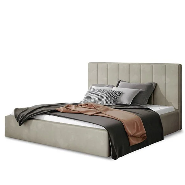 Linen Fabric Upholstered Bed This bed is sure to find its place in every bedroom and will become the central point. It is offered in 3 bed sizes 160×200 cm – 180×200 cm – 200×200 cm Combining elegance and functionality. A Vertical Upholstered Bed is a piece of furniture of simple construction with an interesting headboard. It measures 110 cm tall with a soft, elegant finish, and in addition to its decorative function, it also creates a large space for you to relax on during a screening party.