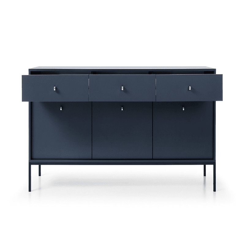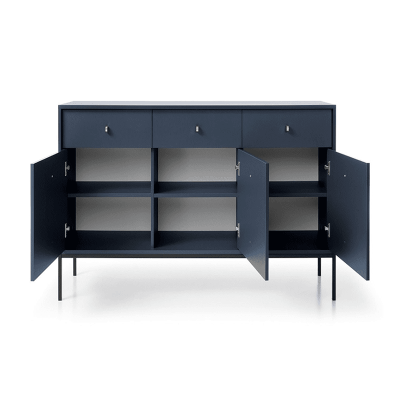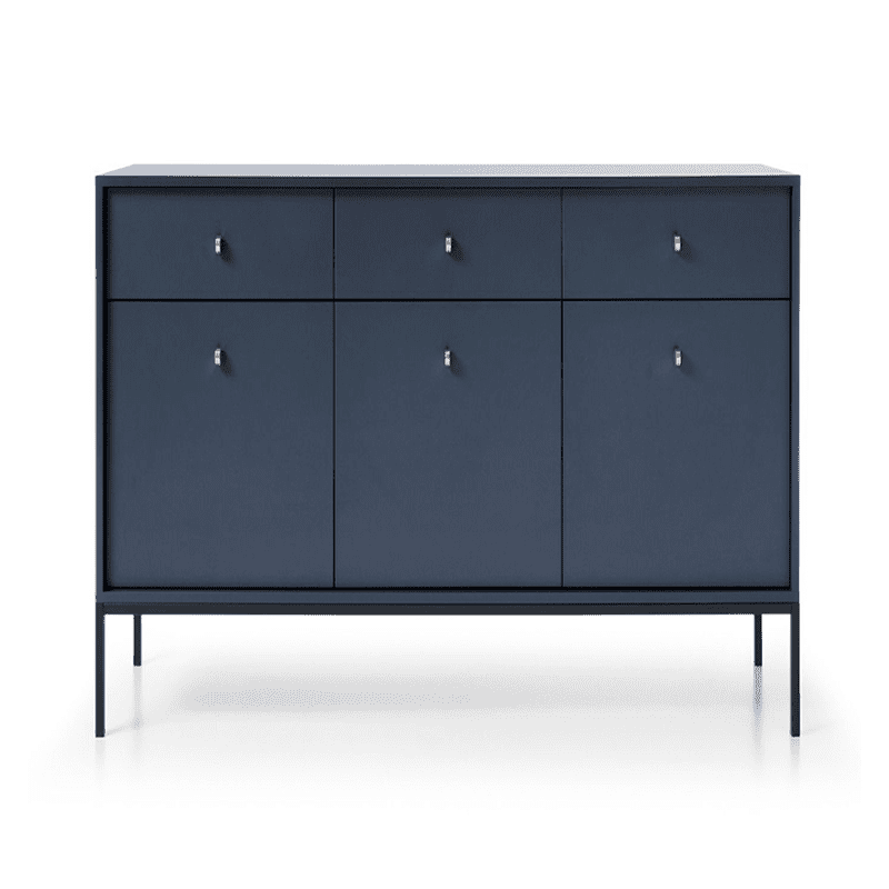 Oslo Drawer Storage in navy blue. Perfectly designed with lots of storage space. With three rows of shelving compartments and three drawers, our Oslo Drawer Storage unit is the perfect blend of Scandi chic and cosy living. Ideal addition for any room.