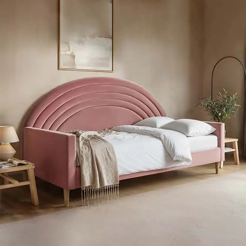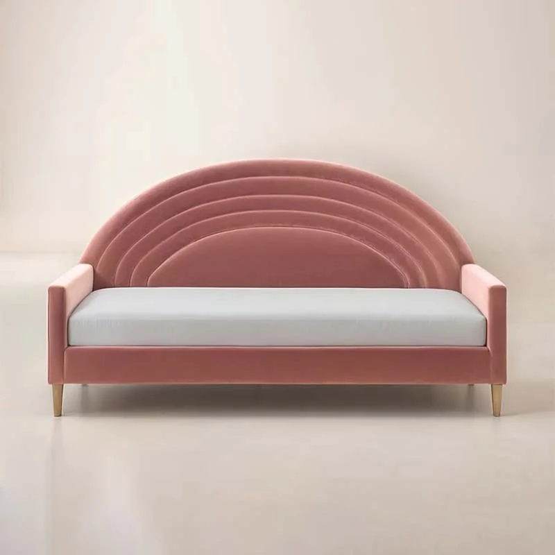 Create a cosy and stylish guest space with the Rainbow Day Bed. Designed with both aesthetics and practicality in mind, this beautifully curved bed features a ribbed panel design that adds a playful yet elegant silhouette to any room. With a choice of two luxurious fabric types, the Rainbow Day Bed is perfect for guest bedrooms, children spaces, or compact living areas.