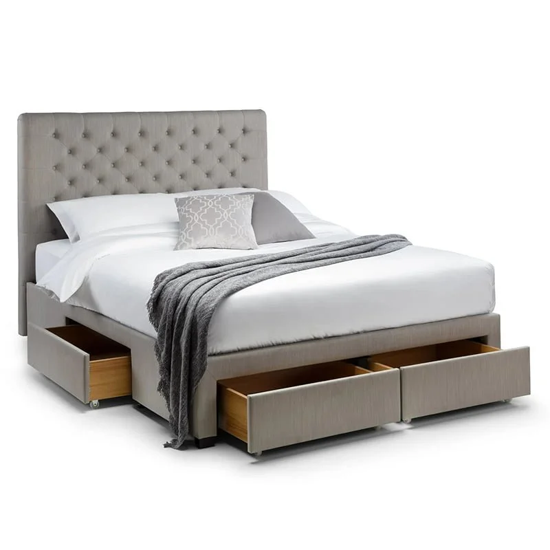 Crafted from beautiful fabric, the Tufted Headboard Drawers Storage Bed exudes sophistication and grace. With a deep buttoned headboard and 4 drawers, not only is this bed gorgeous to look at it provides additional space for all your storage needs.