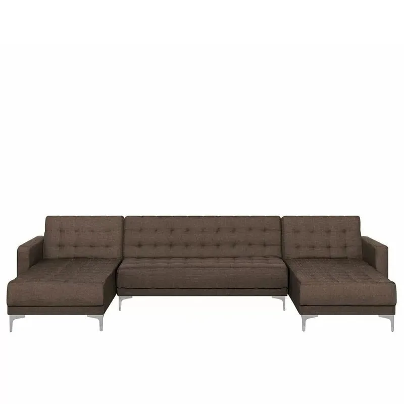 A modular U Shaped Fabric Sofa is ideal for anchoring a room décor and adding an inviting feel to your conversation area. The U Shaped Fabric Sofa a 3-seater and 2 chaises. Fully upholstered in high-quality fabric in elegant brown with beautiful tufting, this corner offers both functionality and timeless style that works well in any modern home setting.