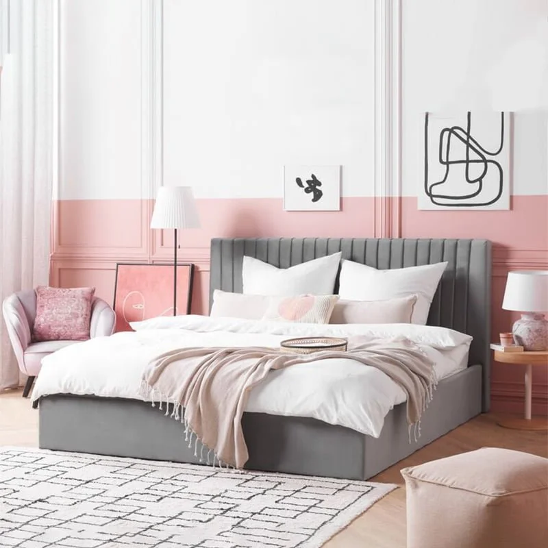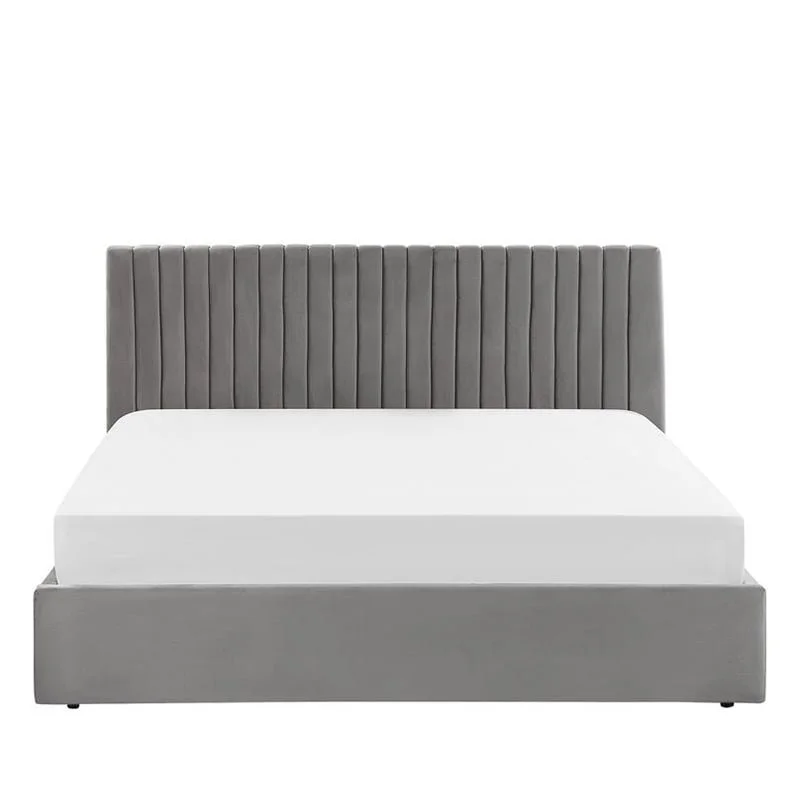 Introduce this Vertical Lined Headboard Bed to your bedroom and guarantee yourself a restful, relaxing night. The piece is upholstered with high-quality velvet, which is pleasant to touch and doesn’t require daily maintenance. It also gives the grey color a wonderful sheen. The tall, tufted lined headboard also helps the piece stand out and offers extra comfort to the bed.