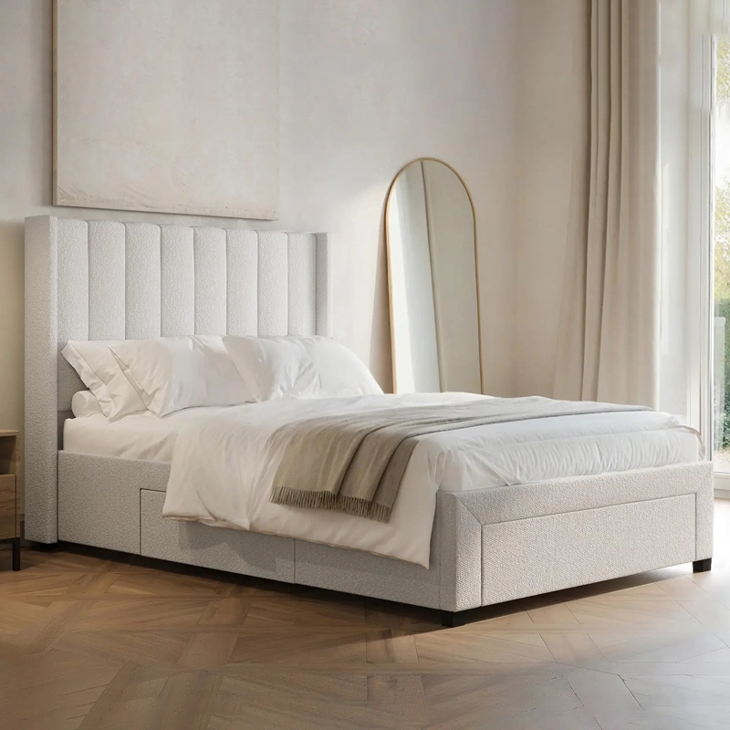 Fluted Winged Headboard: A striking, elegant design with fluted detailing, creating a luxurious focal point